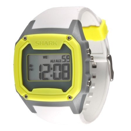 The oversized version of the Classic Shark, the Killer Shark features dual time, alarm, countdown timer, stopwatch and a night vision backlight. The 48mm case size is best suited for larger wrists, and like all Shark Watches, the Killer Shark is backed by our limited lifetime warranty and water resistant to 100 meters.